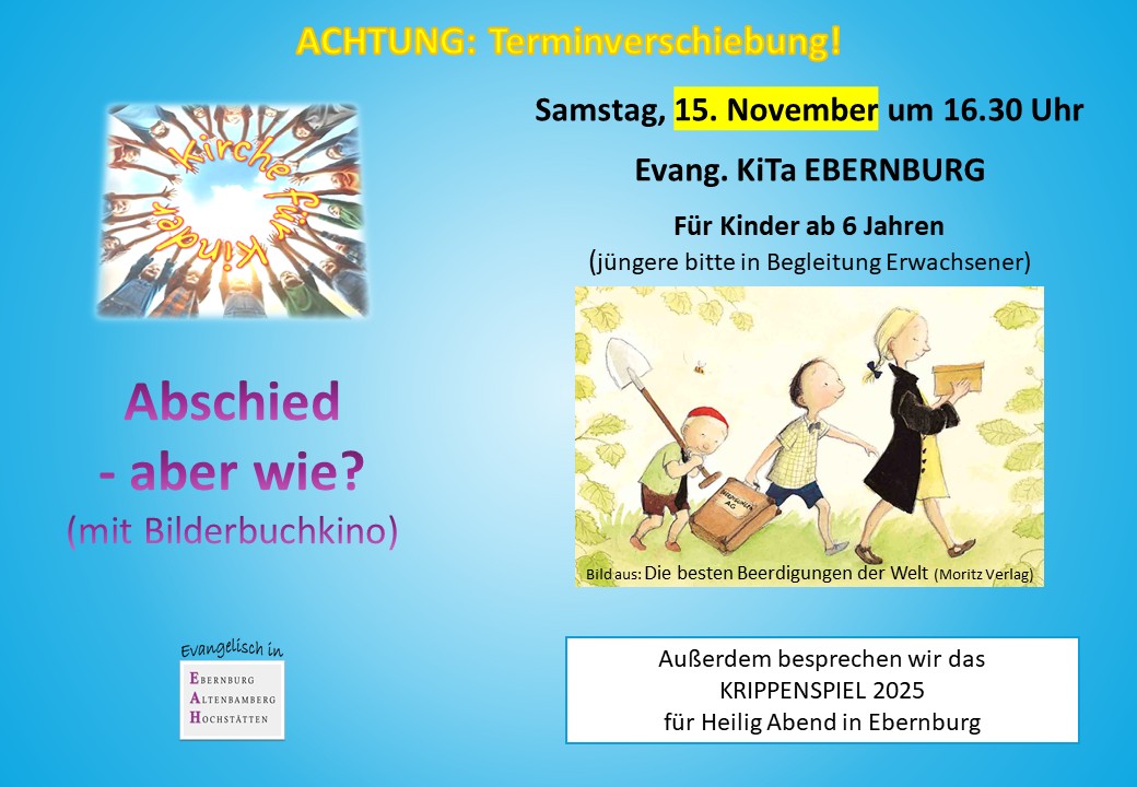 18.00 | !!!!! VERLEGT auf 15.11. Kirche für Kinder (KiTa EBERNBURG) |